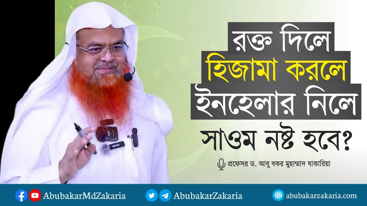 রক্ত দিলে,হিজামা করলে,ইনহেলার নিলে সাওম নষ্ট হবে? প্রফেসর ড. আবু বকর মুহাম্মাদ যাকারিয়া