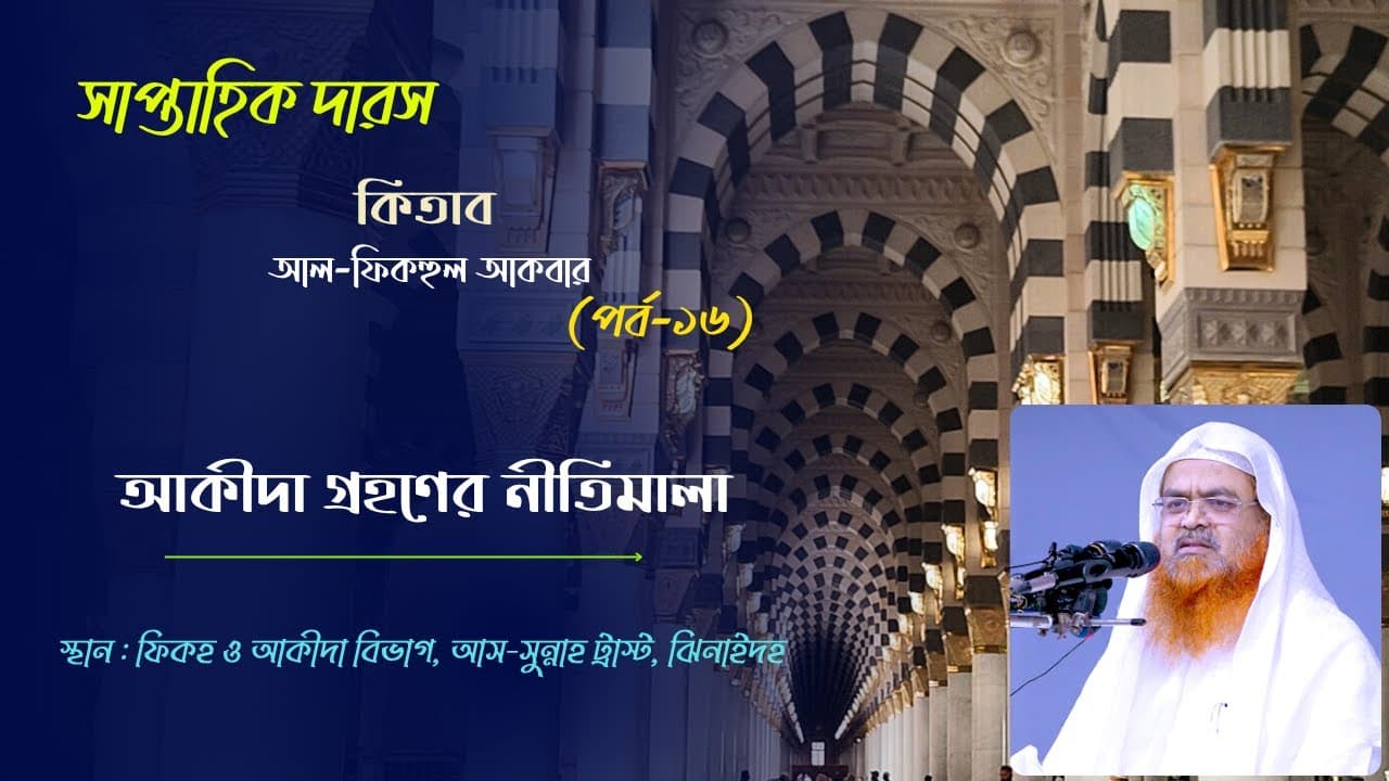 সাপ্তাহিক দারস কিতাব : আল-ফিকহুল আকবার (পর্ব-১৬)বিষয় : আকীদা গ্রহণের নীতিমালা
