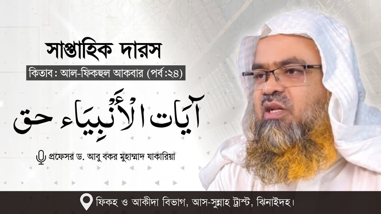 সাপ্তাহিক দারস কিতাব : আল-ফিকহুল আকবার (পর্ব-২৪) বিষয় : آيَات الْأَنْبِيَاء حق