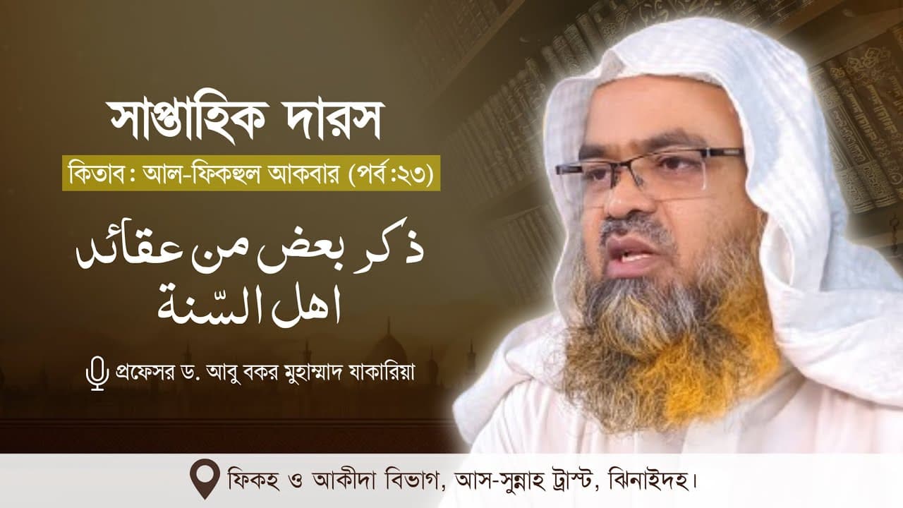 সাপ্তাহিক দারস কিতাব : আল-ফিকহুল আকবার (পর্ব-২৩) বিষয় : ذكر بعض من عقائد اهل السّنة