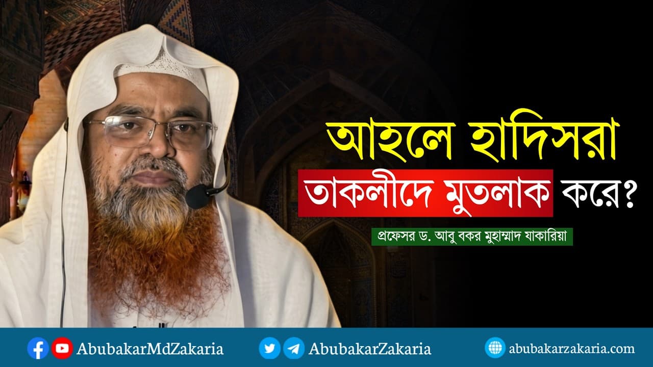 আহলে হাদিসরা কি তাকলীদে মুতলাক করে? প্রফেসর ড. আবু বকর মুহাম্মাদ যাকারিয়া