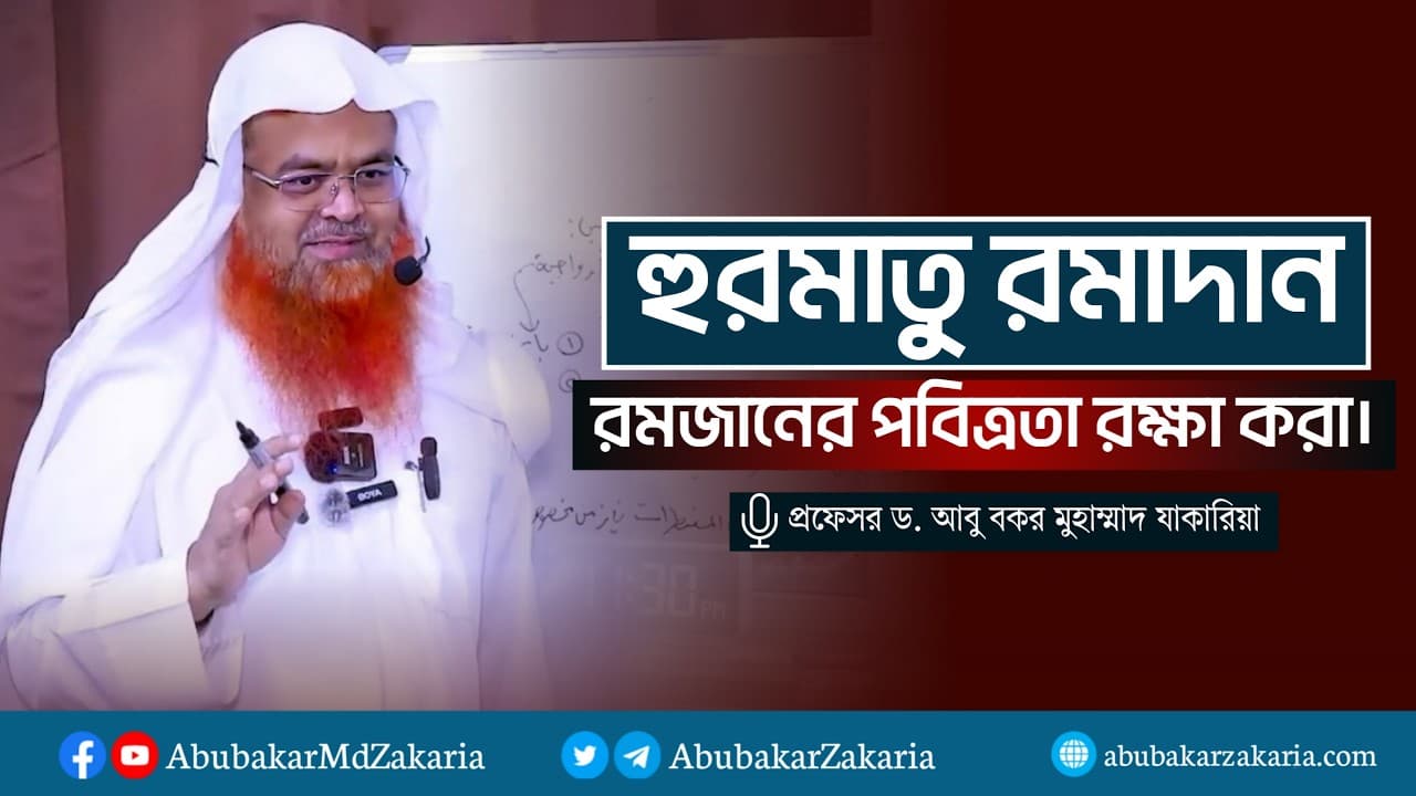 “হুরমাতু রমাদান” বা রমজানের পবিত্রতা রক্ষা করা। প্রফেসর ড. আবু বকর মুহাম্মাদ যাকারিয়া