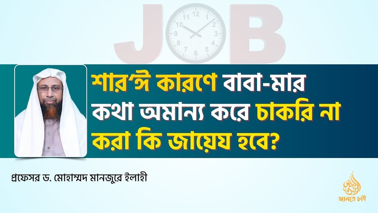 শার‘ঈ কারণে বাবা-মার কথা অমান্য করে চাকরি না করা কি জায়েয হবে? ।। Prof. Dr. Mohammad Monzur-E-Elahi