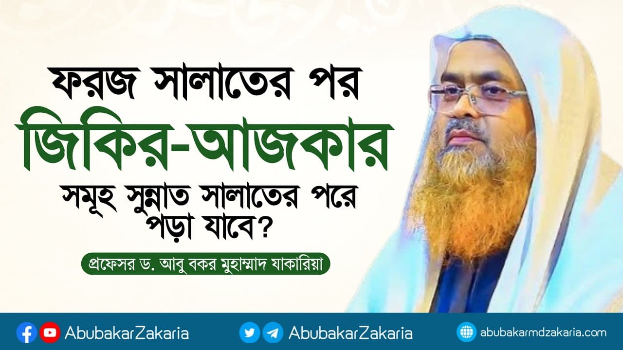 প্রশ্ন : ফরজ সালাতের পর জিকির-আজকার সমূহ সুন্নাত সালাতের পরে পড়া যাবে?প্রফেসর ড. আবু বকর মুহাম্মাদ যাকারিয়া